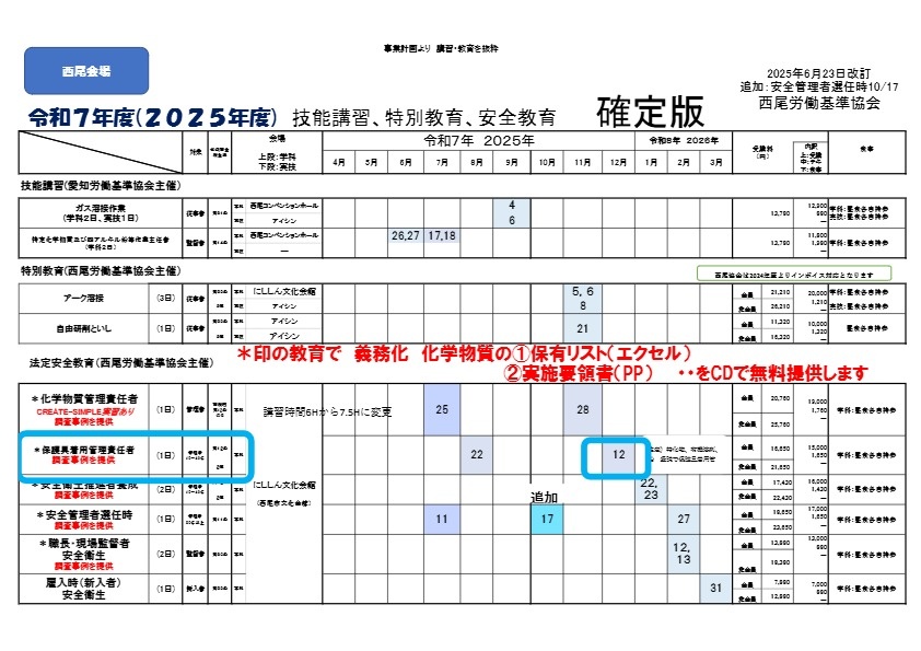 【12月講習案内】保護具着用管理者 12月12日㈮ 定員40名 残席29