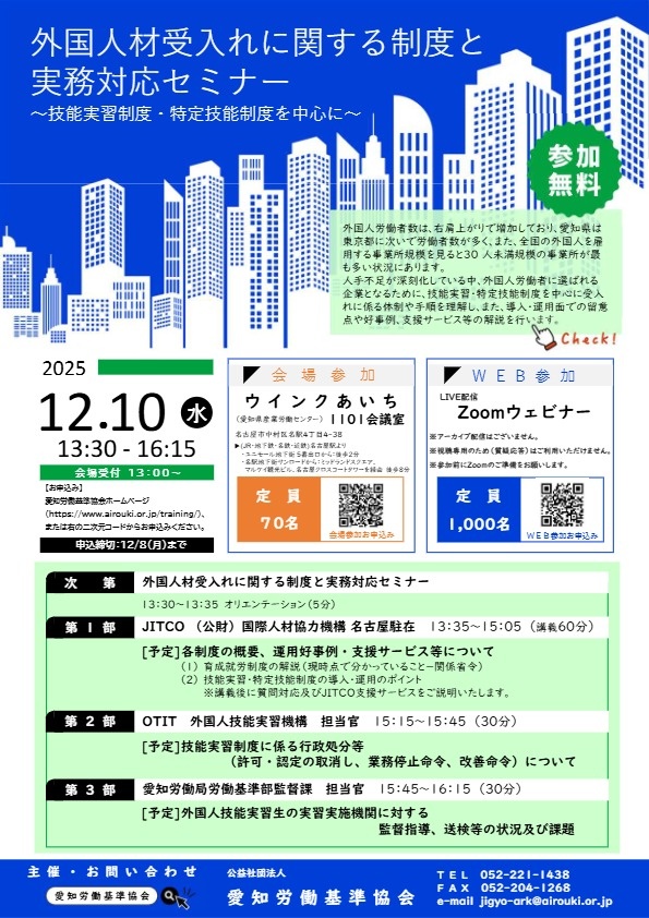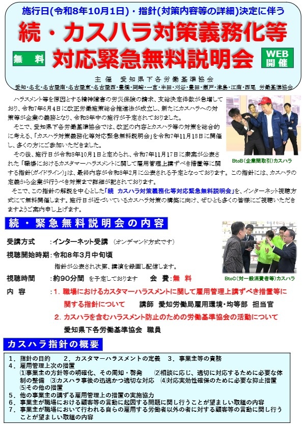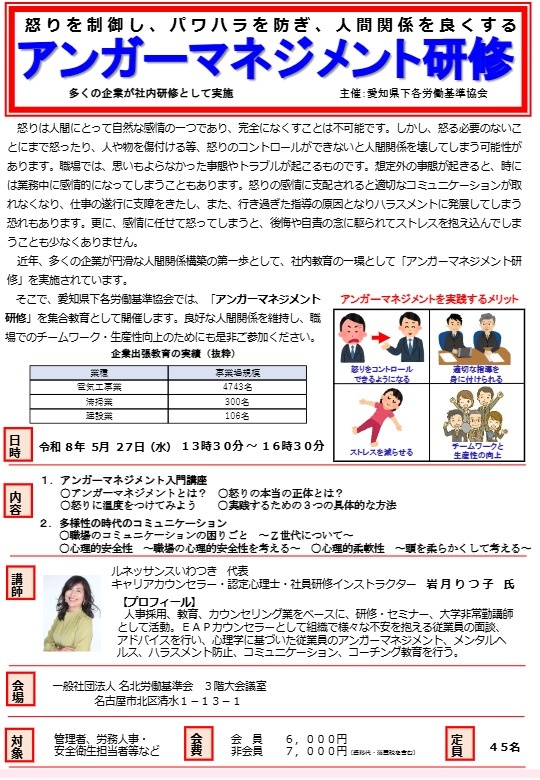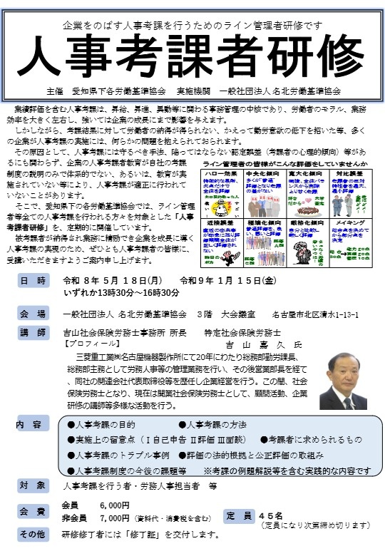 愛知県下の各労働基準協会が主催する勉強会や講習会です。